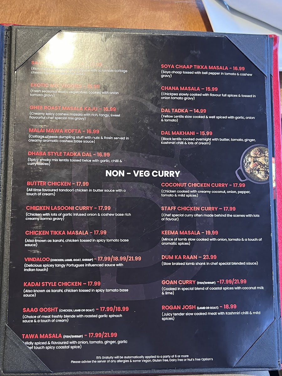 Service and atmosphere are both great. We tried momo’s for the first time, they were okay. Hakka chicken was pretty good. The naan’s are amazing, really fluffy and crispy. Saag paneer is pretty good and butter chicken is on the sweeter side.